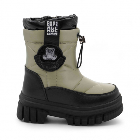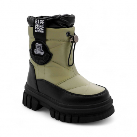 Материал: Верх обуви выполнен из непромокаемого текстиля, что обеспечивает надежную защиту от снега и влаги. Вставки из экокожи дополнительно защищают мысок и пятку сапожек от механических повреждений.