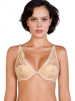 Бралетт с формованной чашкой Latina на косточках, без эффекта пуш-ап. Регулируемые бретели. Застежка в два ряда на 3 позиции. Выполнен из биколорного кружева. Коллекция "Luna".