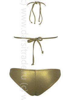 Верх от раздельного купальника: бюстгальтер-триангул с мягкой чашкой которая регулируется сборкой по нижнему краю. Съемные формованные вкладыши без пуш-ап. Застежка - завязка на спинке. Некондиция - нет трусов.