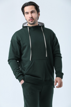 Худи Big size темно-оливкового цвета с длинным рукавом и капюшоном. Карман "кенгуру".