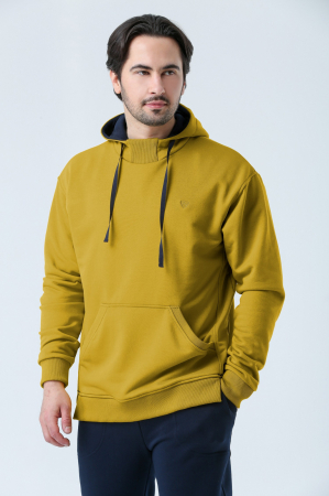 Худи Big size горчичного цвета с длинным рукавом и капюшоном.Карман "кенгуру".