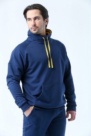 Худи синего цвета с длинным рукавом. Ворот стойка. карман "кенгуру".