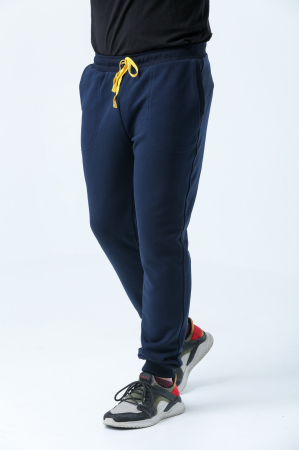 Джоггеры темно-синего цвета, прямого кроя и полусвободного облегания. Ткань футтер трехнитка петля без начеса. Плотные, комфортные, подходят для прохладной погоды. Есть худи к этой модели джоггеров такого же дизайна.
