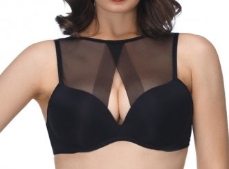 Бюстгальтер "Холтер" с градуированной чашкой Lariana (с эффектом супер пуш-ап), визуально прибавляет 2 размера, без косточек. Разные варианты пристегивания бретелей на спинке. Застежка в 2 ряда на 3 позиции. Выполнен из микрофибры и бесшовной сетки. Коллекция "Adele".