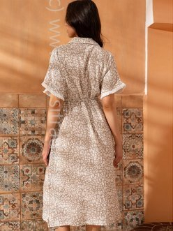 Длинная рубашка Mia-Amore свободного силуэта с коротким рукавом, низ которого декорирован бахромой. В боковых швах рубашки обработаны карманы. По низу изделия расположены разрезы для свободы движения. Линию талии можно подчеркнуть за счет пояса узкого пояса с кисточками, который идет в комплекте. Изделие выполнено из принтованного муслина.