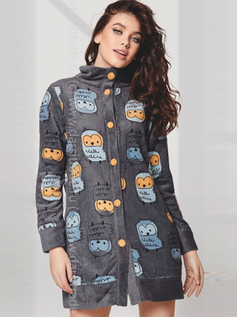 Халат с длинным рукавом, на пуговицах. Выполнен из флиса. Коллекция "Night Life".