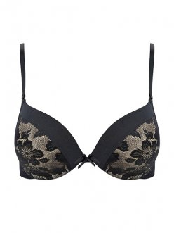 Бюстгальтер пуш-ап среднего размера с гелевой чашкой Matera. Отстегивающиеся бретели. Застежка в один ряд на три позиции. Выполнен из микрофибры и жаккардовой сетки с цветочным узором. Коллекция "Mona"