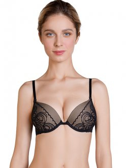 Бюстгальтер пуш-ап среднего размера с гелевой чашкой Matera. Отстегивающиеся бретели. Застежка в один ряд на три позиции. Выполнен из сетки и кружева. Коллекция "Nicole".