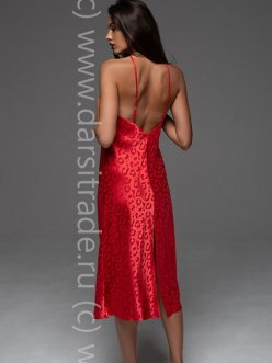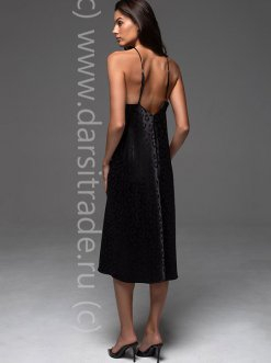 Эффектная длинная сорочка Mia-Amore на тонких бретелях без подреза под грудью. Изделие выполнено из искусственного шелка на жаккардовой основе. По низу спинки обработан разрез для свободы движения.