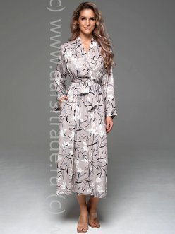 Запашной длинный халат Mia-Amore выполнен из смесового вискозного полотна. В боковых швах есть карманы, по талии халат затягивается поясом.