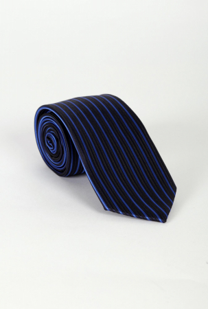 Галстук мужской черный в синюю полоску к классическй мужской рубашке. Можно носить как с пиджаком, так и без него. Также можно носить с трикотажными кардиганами и жилетками. Галстук в наличии в трех ширинах: узкий, стандартный и увеличенный.