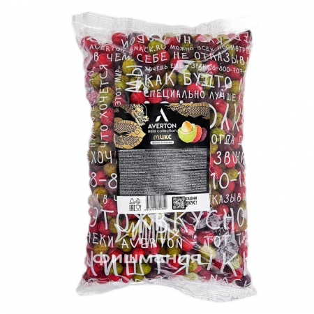 Состав: ядра арахиса (небланшированные), пшеничная мука высшего сорта, сахар, крахмал кукурузный, глазурь кондитерская цветная (сахар, масло растительное рафинированное дезодорированное, какао-порошок, сухая сыворотка молочная, эмульгатор Е322, ароматизатор), крахмал тапиоковый, соль, соевый соус (вода, соевые бобы, пшеница, соль), куркума, пряности, разрыхлитель теста (Е500, Е503), стабилизатор (Е414), красители (Е102, Е110, Е120, Е133, Е150, Е153, Е160а, Е160с, Е160d, Е162, Е163, Е171), ароматизаторы пищевые, регулятор кислотности (Е330), усилитель вкуса (Е621), чеснок сушёный, перец чили, лук сушёный, масло кунжутное. В составе могут содержаться следы глютена, сои, кунжута, молока, горчицы.