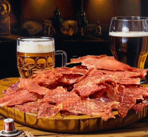 Порадуйте себя и близких вкуснейшим снеком! Сушеная индейка со вкусом гриля — это идеальный выбор для тех, кто ценит качество и натуральный вкус. В каждом кусочке сохранены полезные свойства мяса, которое прошло бережную сушку, сохраняя максимум питательных веществ. А аромат дымка и насыщенный вкус гриля сделают этот продукт вашим любимым лакомством!