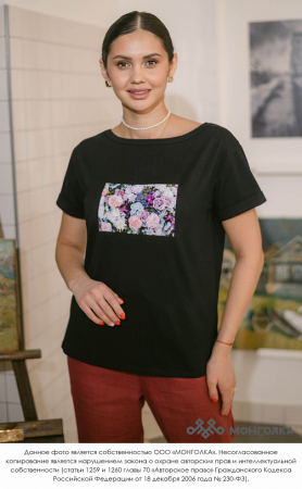 Базовая футболка сшита из кулирной глади с лайкрой, именно поэтому она не просвечивает, не скатывается, мягкая, эластичная и приятная к телу.