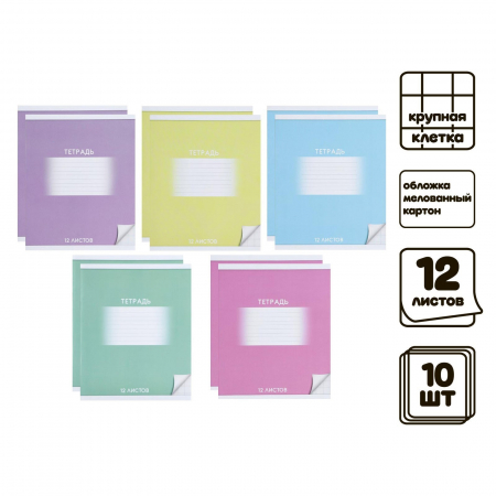 Комплект тетрадей из 10 штук, 12 листов в крупную клетку Calligrata "Школьная", обложка мелованный картон, ВД-лак, блок офсет, 5 видов по 2 штуки (арт. 9080152)