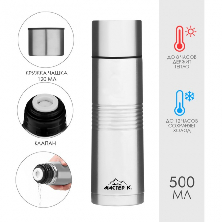 Термос - это отличное решение на каждый день для любителей чая и кофе.Термос подходит для использования в разных обстоятельствах: идеален для походов, длительных прогулок с ребенком или мини путешествий на природу. Многие используют его как инвентарь для отдыха, походов и туризма. Термос можно взять с собой на пикник, а также его можно взять с собой в поездки на дачу или на работу, чтобы напитки не остывали по дороге.