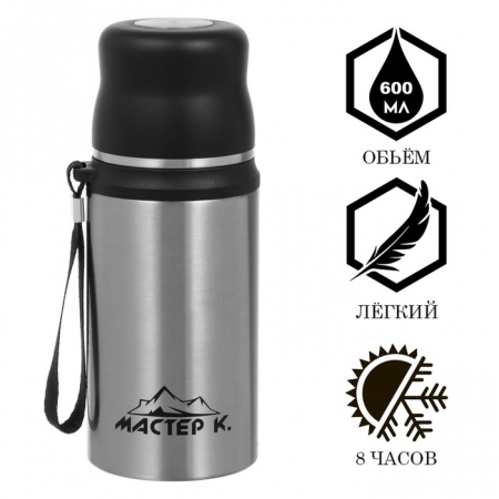 Термос с подвесом, 600 мл – практичное решение для тех, кто ценит комфорт на ходу. Изготовленный из нержавеющей стали, он предлагает надежное хранение напитков в любом ритме дня.