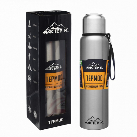 Ваш надёжный компаньон в пути! Термос – это вместительный флакон ёмкостью 1 литр для напитков, оснащённый крышкой-кружкой и специальным ситечком.