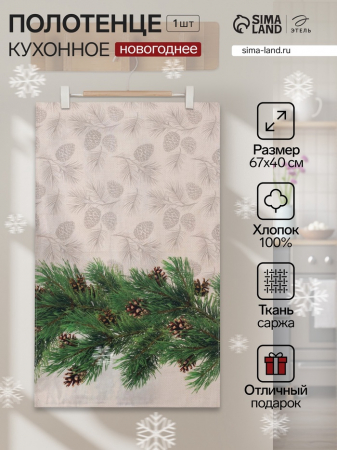 Полотенце «Этель» Еловые ветви 40?67 см, 100% хл, саржа 190 г/м? (арт. 3629004)