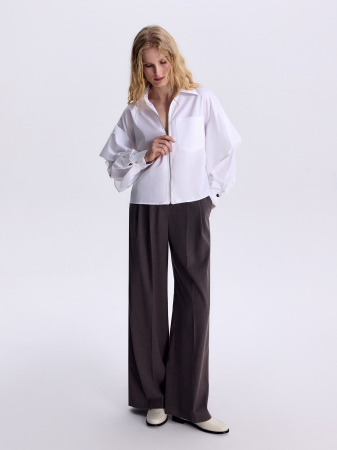 Особенности ткани: застежка-молния и воланы на рукавах