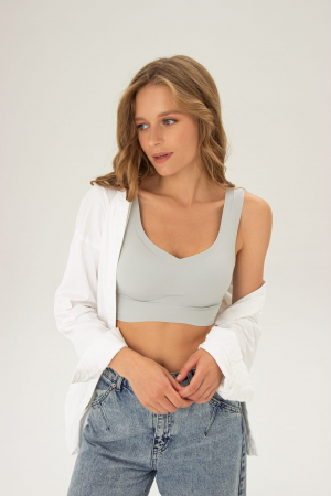 Бесшовный бюстгалтер-топ. Широкие эластичные лямки и отсутствие замков обеспечивают надежную посадку как в ежедневной носке, так и при занятии спортом. Вынимающиеся латексные чашечки и большая палитра цветов.