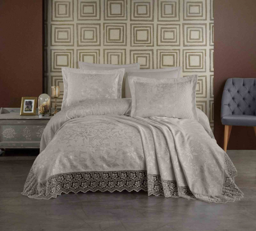 Покрывало EFOR Pique Bedspread LEYLA (240*260) с наволочками серый GRI