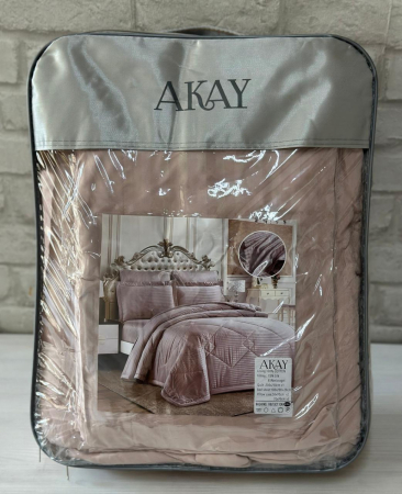 КПБ AKAY SATIN с одеялом сухая роза евро