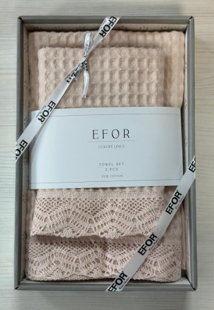 Набор вафельных полотенец EFOR из 2-х предметов (50*90 и 70*140) WAFFLE SOMON персиковый гипюр