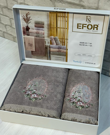 Набор полотенец EFOR из 2-х предметов (50*90 и 70*140) CICEK SEPETI кофейный KAHVE