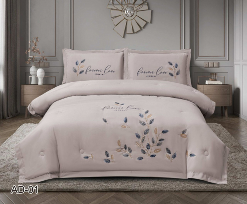КПБ EFOR COTTONI с одеялом с вышивкой "листья на ветке" (AD-01), сиреневый евро