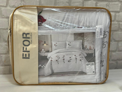 КПБ EFOR SATIN Эмилия (№3 РОЗА) с одеялом с вышивкой A.MAVI светло-голубой евро
