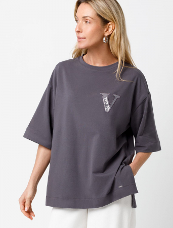 Футболка выполнена из эластичного хлопка. Авторский принт нанесен фактурной краской с устойчивым покрытием. Модель дополнена боковыми разрезами и фирменным логотипом бренда по низу изделия. Спинка немного длиннее. Свободный крой подходит для любой фигуры и не сковывает движений.