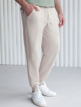Брюки-джоггеры выполнены из эластичного футера. Изделие с двумя боковыми и одним задним карманом украшено логотипом бренда. Посадка регулируется шнуром, продетым в широкий эластичный пояс. Мягкий и плотный материал хорошо пропускает воздух, а наличие ПЭ в составе способствует формоустойчивости и легкости изделия. Сочетается в костюме с худи U49.037