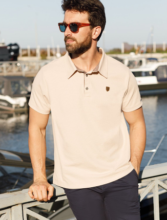 Футболка-поло выполнена из фактурного трикотажа. Застежка на металлические пуговицы. Хлопковый трикотаж с эластаном хорошо тянется и не сковывает движений. Подходит для любой фигуры. Модель дополнена вышитым логотипом бренда.