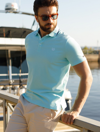 Футболка-поло выполнена из фактурного трикотажа. Модель с прямого кроя с небольшими разрезами по бокам дополнена вязаным воротником с контрастными пуговицами в тон тонкой полосы и вышитым логотипом бренда. Премиальный хлопковый трикотаж гарантирует комфорт и износостойкость. На рукаве брендированная нашивка из эко-кожи.