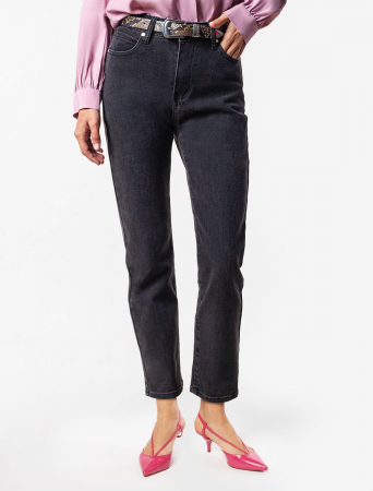 Темно-серые джинсы из плотного прочного хлопка с добавлением нитей эластана. Укороченная модель изящно открывает лодыжки. Высокая посадка грамотно подчеркивает силуэт. Данная модель легко и безупречно поможет составить модный образ вместе с трикотажным поло, свободной блузкой, футболкой или жакетом.