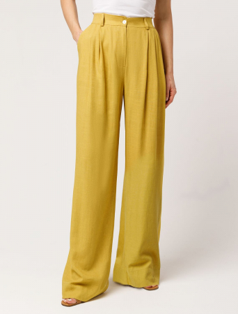 Брюки-палаццо выполнены изо льна с вискозой. Свободная модель с посадкой на талии визуально вытягивает силуэт и создает роскошный образ. Ткань изящно драпируется, струится по ногам, почти не мнется и сохраняет форму в течении долгого времени. Резинка на поясе. Подходит для любой фигуры и скрывает недостатки. Сочетается в костюме с топом D23.060 и блузками D29.237, D29.244