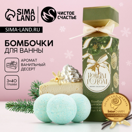 Бомбочки для ванны «С Новым годом!», 3?40 г, аромат ванильный десерт, Чистое счастье (арт. 9279802)