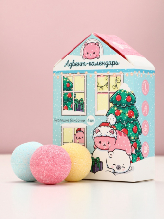 Адвент-календарь «С Новокотием!», бомбочки для ванны 4 шт. по 130 г, ароматы лаванда, мёд, вишня, роза (арт. 7857779)