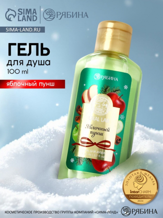Гель для душа новогодний, аромат: яблочный пунш, 100 мл, Ural Lab (арт. 10867654)