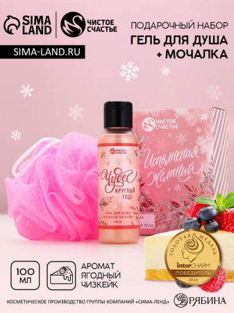 Новогодний подарочный набор косметики «Исполнения желаний»: гель для душа 100 мл и мочалка для тела, Чистое счастье (арт. 10528152)
