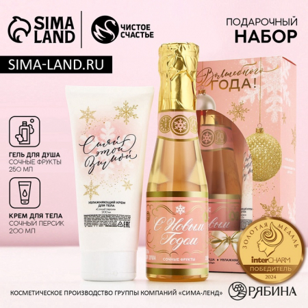 Новогодний подарочный набор косметики «Волшебного года»: гель для душа шампанское 250 мл и крем для тела 200 мл, Чистое счастье (арт. 9062647)