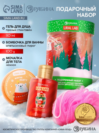 Подарочный набор новогодний в тубусе «Снеговичок», бомбочка, гель, мочалка, URAL LAB (арт. 10882915)