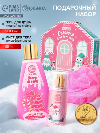 Подарочный набор новогодний «Счастья в Новом году», гель для душа, мочалка и мист, URAL LAB (арт. 10892772)