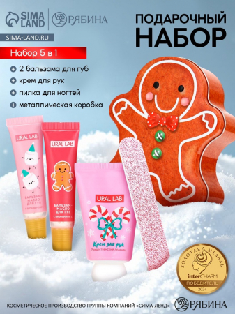 Новогодний подарочный набор косметики: крем для рук, бальзам для губ, пилочка для ногтей, URAL LAB (арт. 10882805)