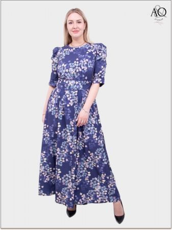 Платье длинное в пол без подкладки. Платье отрезное по линии талии, юбка с бантовыми складками, прорезными карманами и широким поясом. По спинке молния. Вырез горловины округлый, рукав на подкладке втачной со сборками длинной 3/4.Платье выполнено из легкой текстильной ткани Ниагара.Параметры модели на фото: 100/80/106 рост 178,размер на модели 48.
