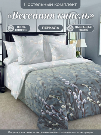Комплект постельного белья «Весенняя капель» из перкали — это идеальное сочетание стиля и комфорта для вашего сна. Элегантный дизайн постельного белья придаст вашей спальне свежесть и уют, создавая атмосферу весеннего пробуждения.