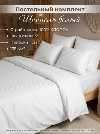 Комплект постельного белья Шпинель в белоснежном цвете добавит изысканности и уюта в вашу спальню. Изготовленный из премиального страйп-сатина, этот комплект сочетает в себе мягкость и прочность. Сочетание сатинового и жаккардового плетений создает эффектный однотонный рисунок с чередующимися глянцевыми и матовыми полосками.