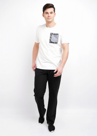 Брюки с отрезным поясом из кашкорсе, двумя карманами в боковых швах и одним накладным карманом сзади.