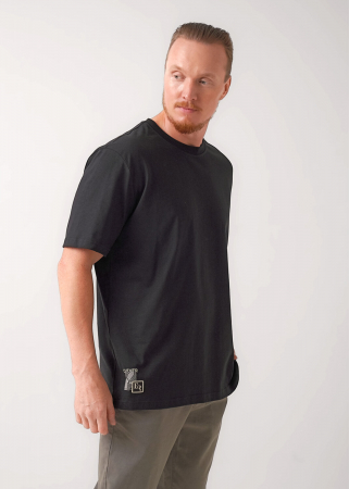 Футболка увеличенного объема с круглой горловиной из хлопкового плотного трикотажного полотна. Изделие дополнено имиджевым принтом и фурнитурой. Данная модель прекрасно впишется в любой гардероб и составит образ с брюками или джинсами.